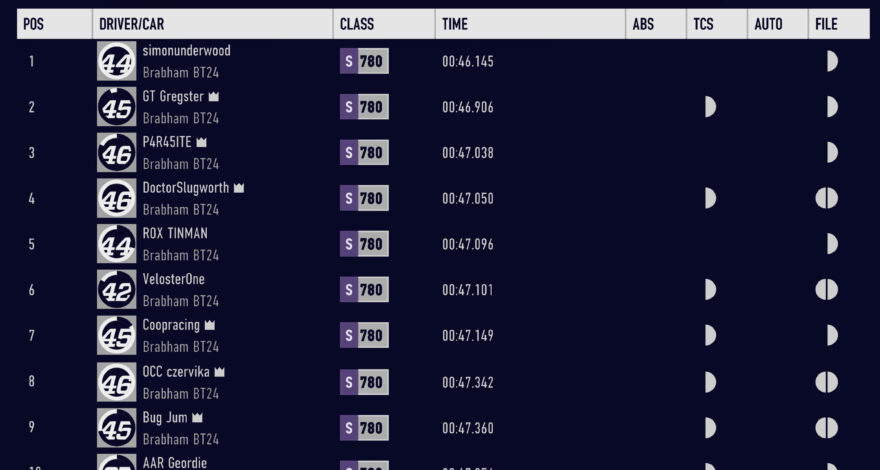 September Week 2 Leader Board Times